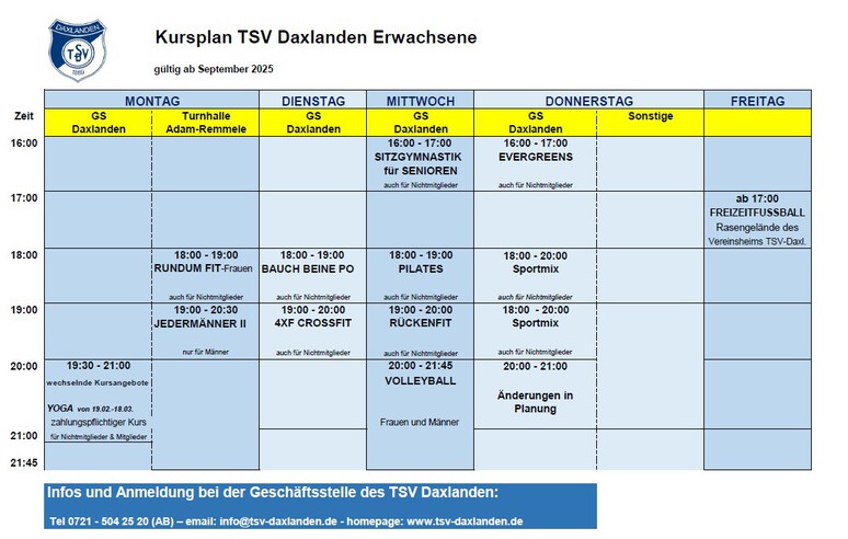 Viel Spaß beim Sport bei Ihrem TSV Daxlanden!